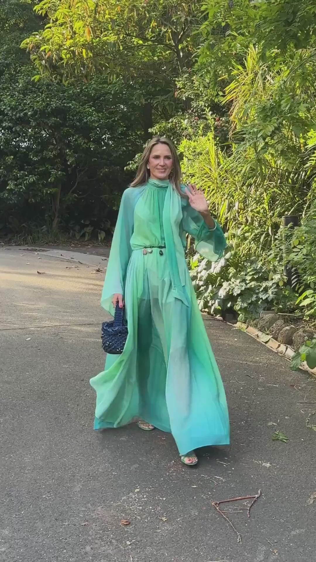 - This simple yet elegant dress features a high neck and a fitted waist, accentuating a flattering figure. Its minimalist design exudes sophistication and versatility.