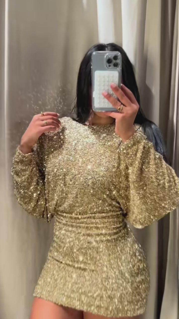 - This stylish backless mini dress features batwing sleeves and a flattering silhouette. Its trendy design allows you to show off your back while still looking elegant.